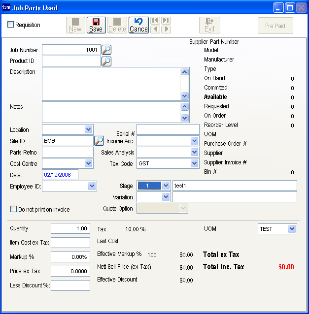 - Job Card Parts Used
